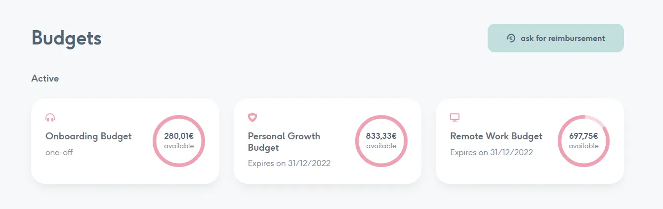 After being active, the budgets appear on the employee's side according to what was set up by the company.