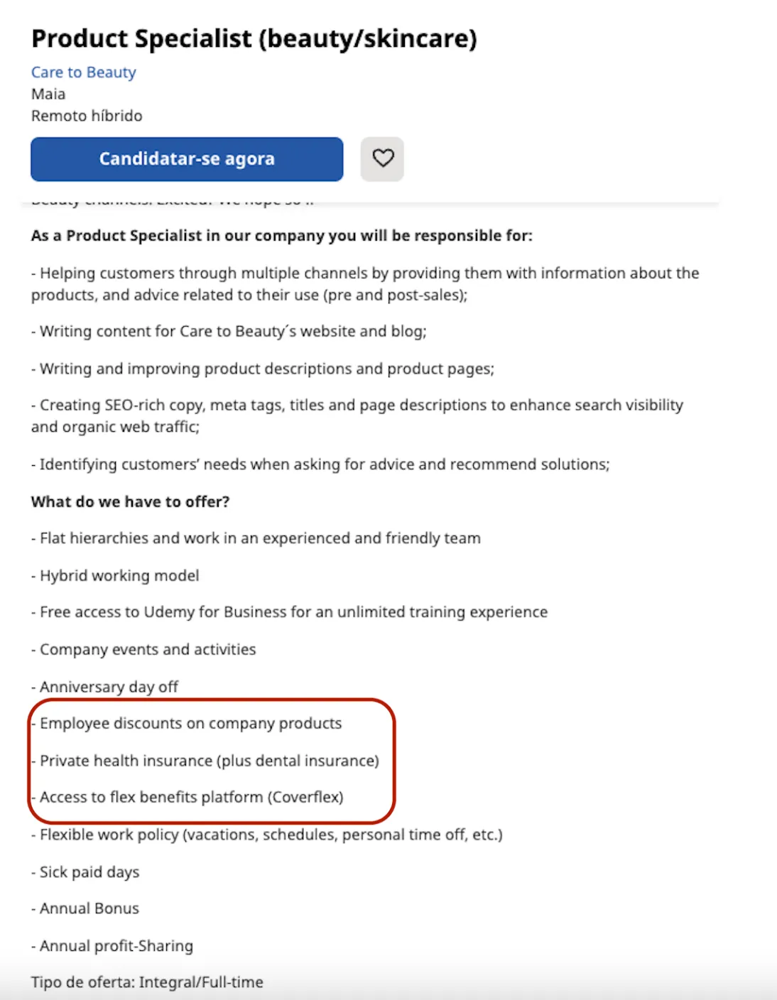 Last but not least, here are some examples of job ads from companies that mention the benefits they offer. Get inspired!