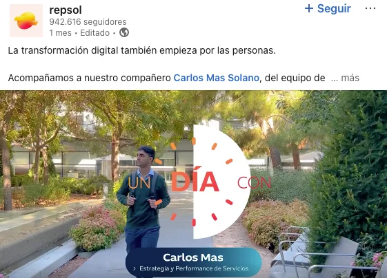 Repsol combina una propuesta de valor sólida (remuneración competitiva y estabilidad) con una comunicación activa en LinkedIn donde comparte historias reales de empleados, proyectos de innovación y avances en sostenibilidad.