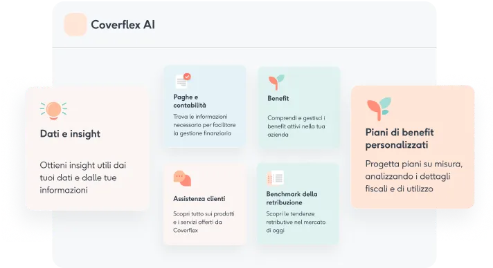 Flessibile per le aziende, intuitiva per i team. Coverflex AI unisce automazione e insight intelligenti all’esperienza che già conosci, trasformando la gestione dei compensi in qualcosa di più rapido, equo e trasparente.