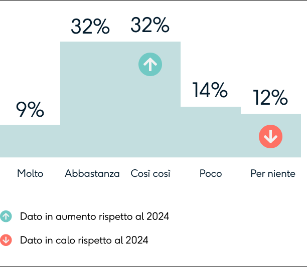 Nel 2025, il 41% dei lavoratori si dichiara molto o abbastanza informato sui servizi di welfare disponibili nella propria azienda, in lieve calo rispetto al 2024. Un dato stabile, ma che evidenzia margini di miglioramento: quasi un dipendente su due conosce poco o nulla le opportunità offerte. Le comunicazioni interne e i manager restano le principali fonti d’informazione, confermando quanto la chiarezza comunicativa sia fondamentale per rendere il welfare davvero accessibile.