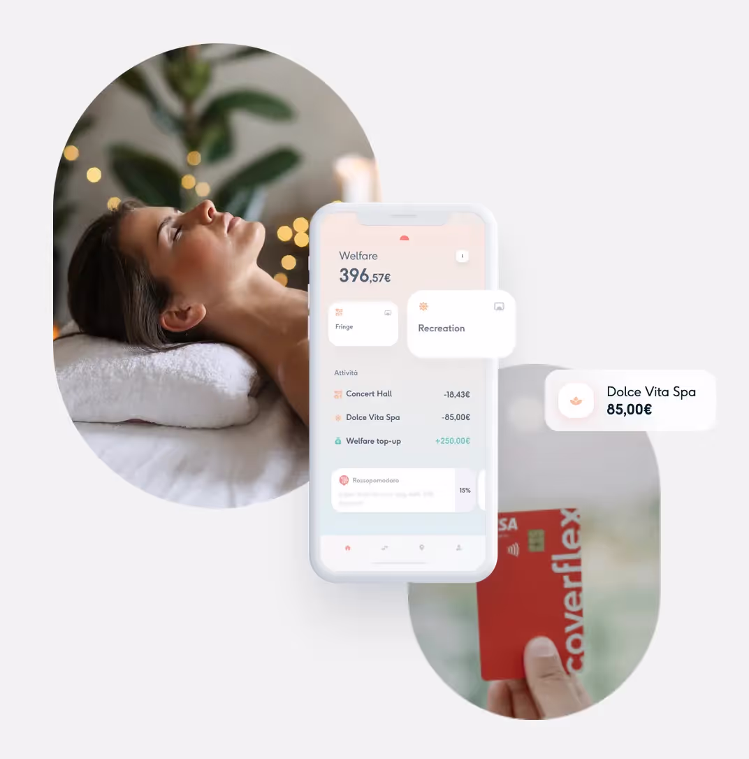 Con Coverflex gli utenti hanno a disposizione una voucher card con cui spendere liberamente il proprio budget fringe e una app per monitorare il proprio saldo residuo e accedere a sconti esclusivi.