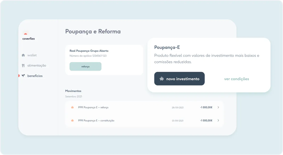 1 Este valor é uma estimativa, com base em dados de utilização real da plataforma, e não uma garantia. A poupança efetiva por colaborador que a utilização da solução Coverflex permite à empresa depende do montante mensal em benefícios Coverflex que a empresa decida alocar a cada colaborador.